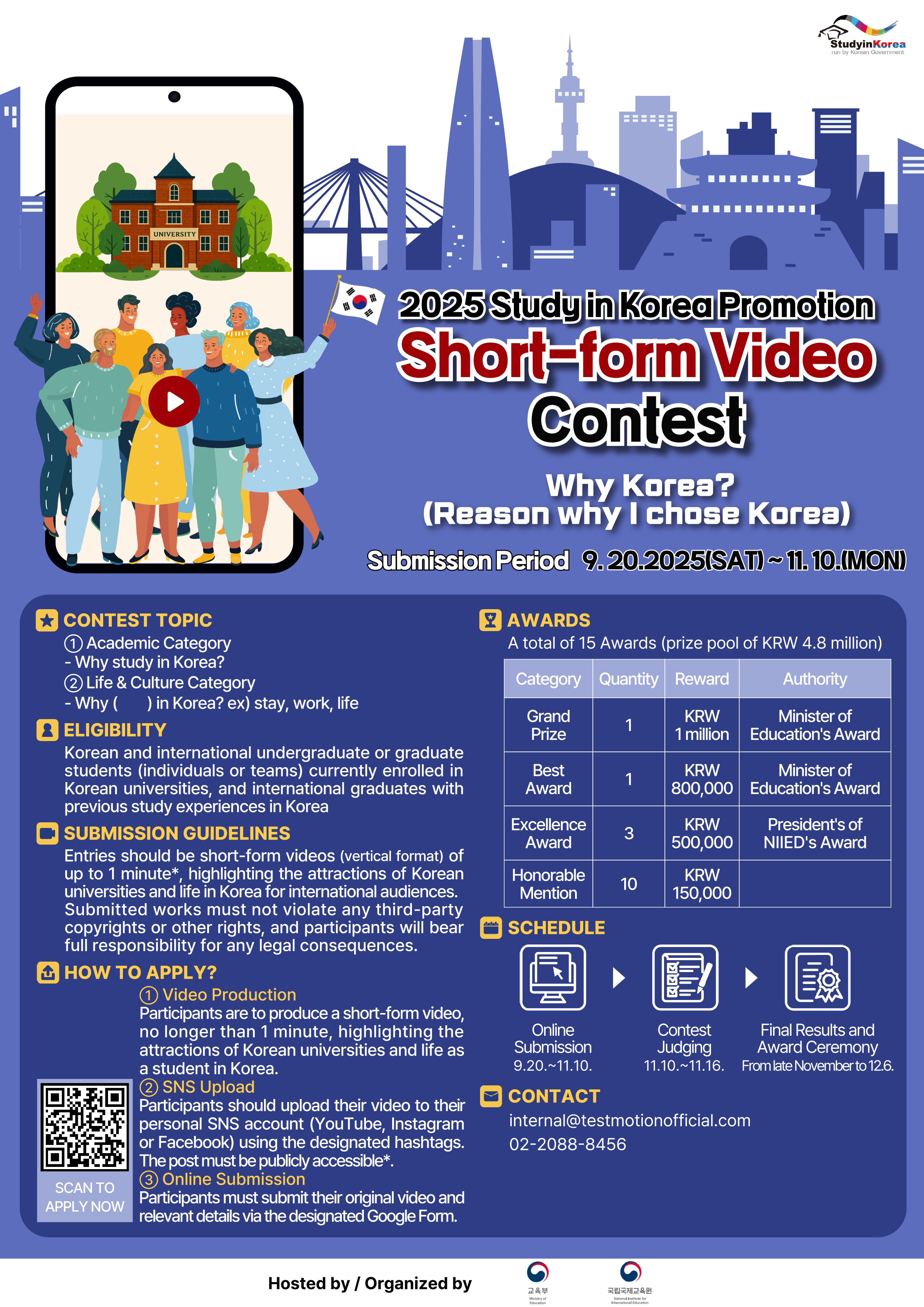 국립국제교육원에서 주관하는 「2025년 한국유학 홍보 숏폼 영상 공모전」을 홍보하오니,