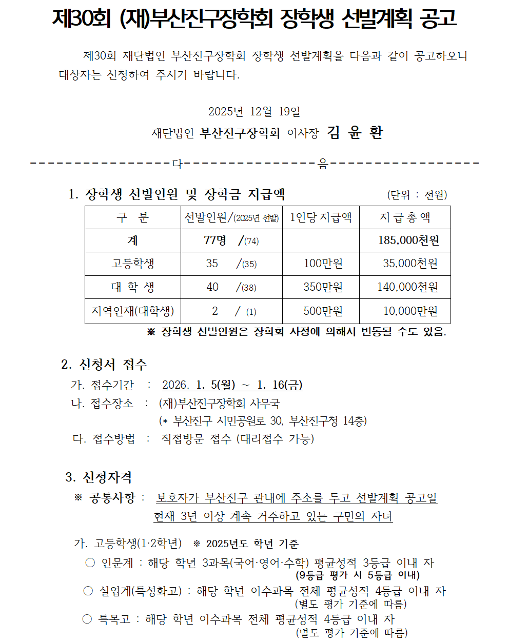 [(재)부산진구장학회]제 30회 부산진구장학회 장학생 선발계획 공고 안내