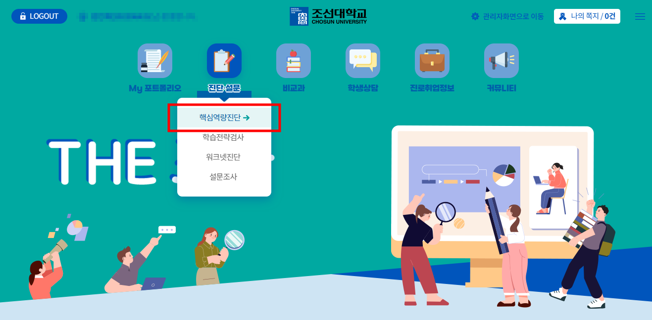 1. 더조아시스템 로그인 → 진단 설문의 핵심역량진단 항목 선택