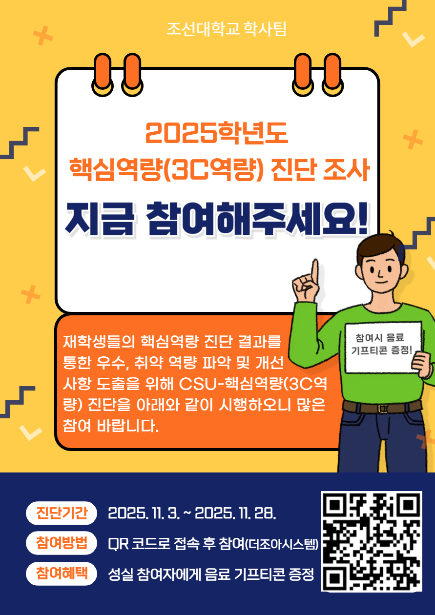 [학사팀] 2025학년도 CSU-핵심역량(3C역량) 진단 조사 안내(참여자 음료 기프티콘 증정)