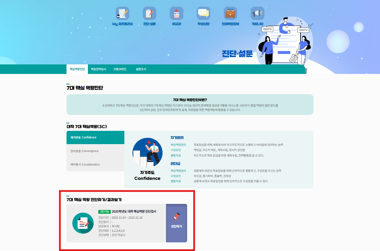 2. 하단에 7대 핵심역량 진단하기/결과보기에서 진단하기 선택