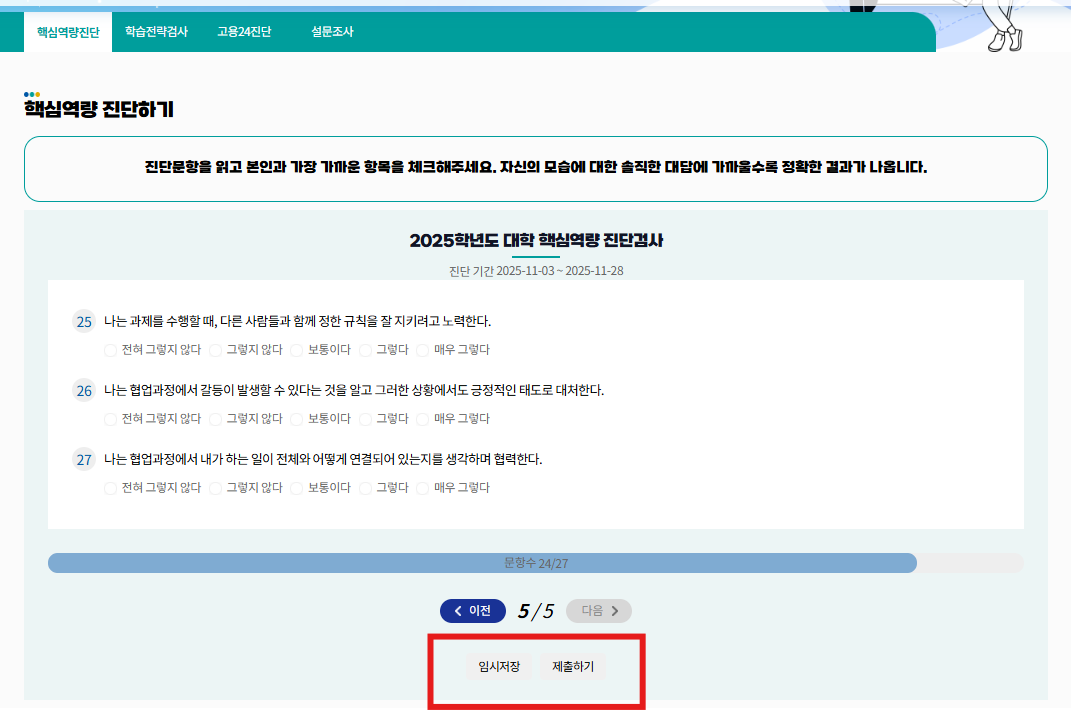 3. 27문항 체크 후 제출하기 클릭